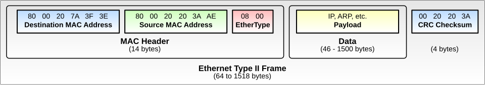 링크가 만들어졌다고 해서 바로 인터넷이 되는 것은 아니다. 이더넷은 기본적으로 같은 LAN 안에서 프레임이라는 단위로 데이터를 전달한다. 프레임 안에는 출발지 MAC 주소와 목적지 MAC 주소가 들어간다.